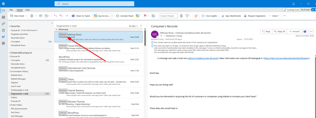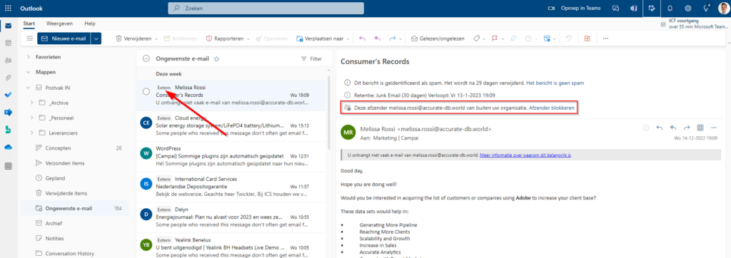 Dit is waar het “External” label zijn waarde bewijst. Als je nu een mail krijgt die ogenschijnlijk van een ‘collega’ komt met de vraag om een factuur te betalen of een rekeningnummer te veranderen, maar het bericht heeft het label “Extern”, dan is de kans groot dat je te maken hebt met een fraudeur.