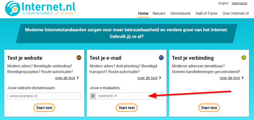 Ga naar https://internet.nl en vul daar je e-maildomein in.